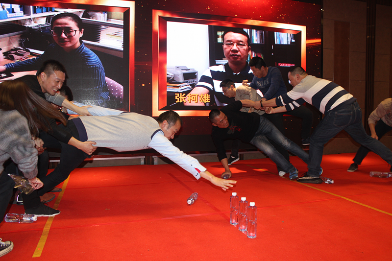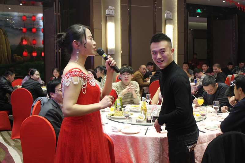 晚宴中集团领导亲临每围宴席向各位嘉宾与公司同仁敬酒并祝贺新春,大家频频举杯,开怀畅饮,彼此祝福。为增加现场气氛,晚宴还安排了欢乐游戏环节与幸运大抽奖环节。随着游戏的进行以及幸运大抽奖中奖者的出现,整个现场一片欢腾,晚宴一度进入高潮。