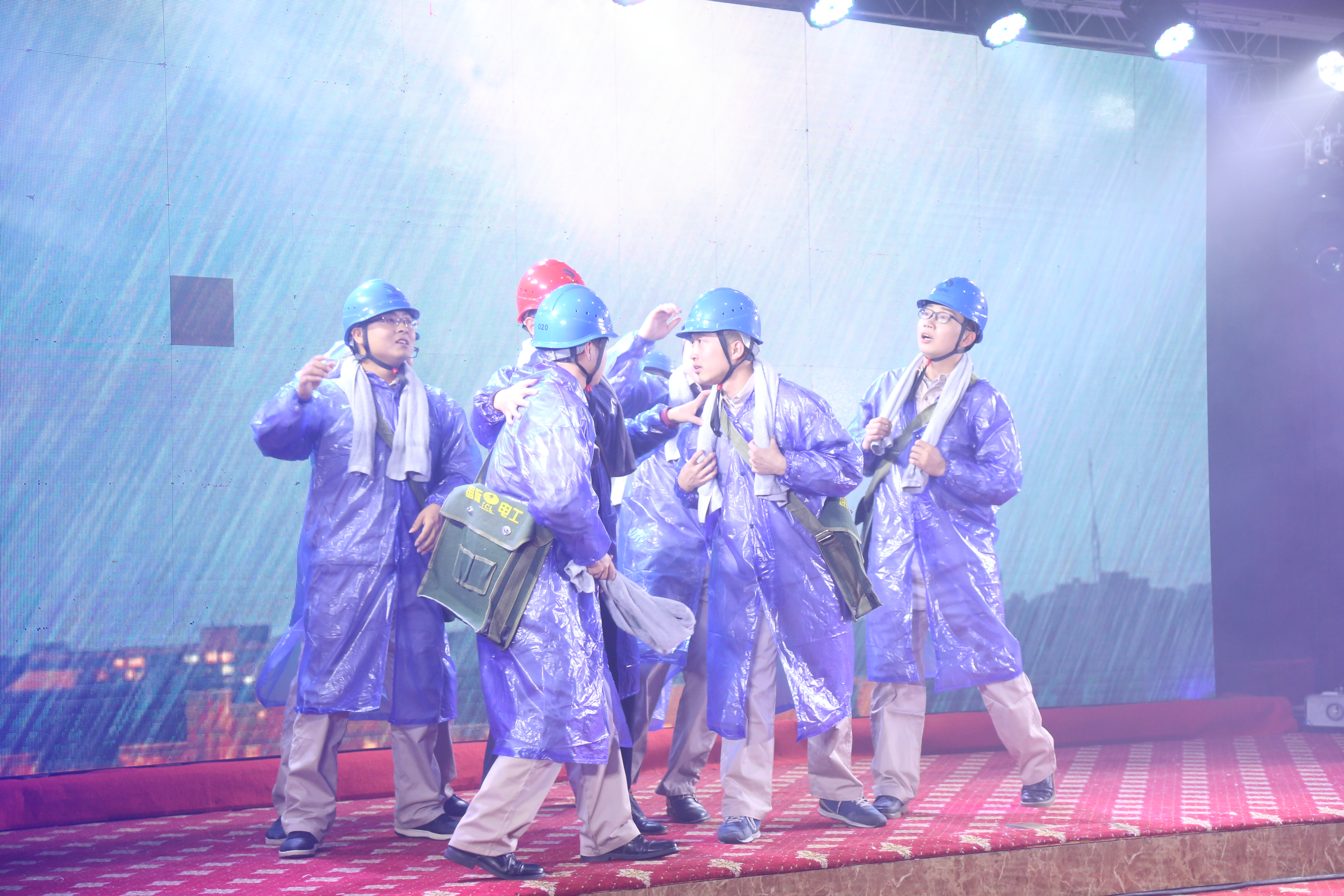 整场晚会的点睛之作是情景剧——《光明使者》,以莫兰蒂台风期间公司电力人员真实抢修为背景资料,演绎了一场德京人独特的婚礼。全程笑点、泪点并存,朴实却又动人的演出充分彰显德京人的精神。同时,晚会现场还安排了年度优秀员工、优秀项目经理等颁奖环节,对他们的辛勤付出表示肯定,也以此鼓励大家再接再厉。激动人心的抽奖环节更是贯穿整场晚会,价值5888元的特等奖最终花落工程部技工陈丛平手中,当主持人询问获奖感言时,常年在工地生活的他已经激动的说不出话来。